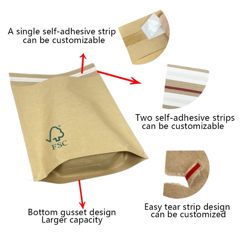 বৈশিষ্ট্য : বায়োডেগ্রেডেবল ক্রাফ্ট পেপার মেলার ভাল জলরোধী পারফরম্যান্স, বৃষ্টির দিনগুলিতে আর ভয় পায় না; সুপার আঠালো ব্যবহার, রাবার সিলিং ধ্বংস করুন, গোপনীয়তা রক্ষা করুন, গোপনীয়তা ভাল।
