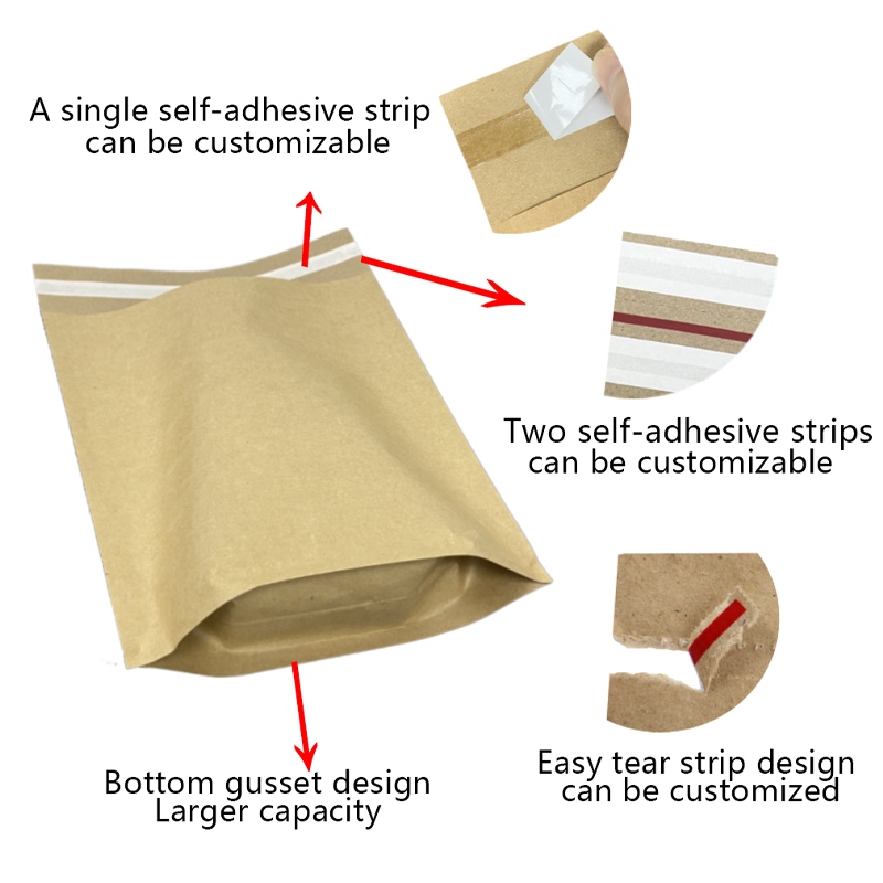 বৈশিষ্ট্য: বায়োডিগ্রেডেবল ক্রাফ্ট পেপার মেইলার ভাল জলরোধী কর্মক্ষমতা, আর বৃষ্টির দিনে ভয় পায় না; সুপার আঠালো ব্যবহার, রাবার সিলিং ধ্বংস, গোপনীয়তা রক্ষা, গোপনীয়তা ভাল.