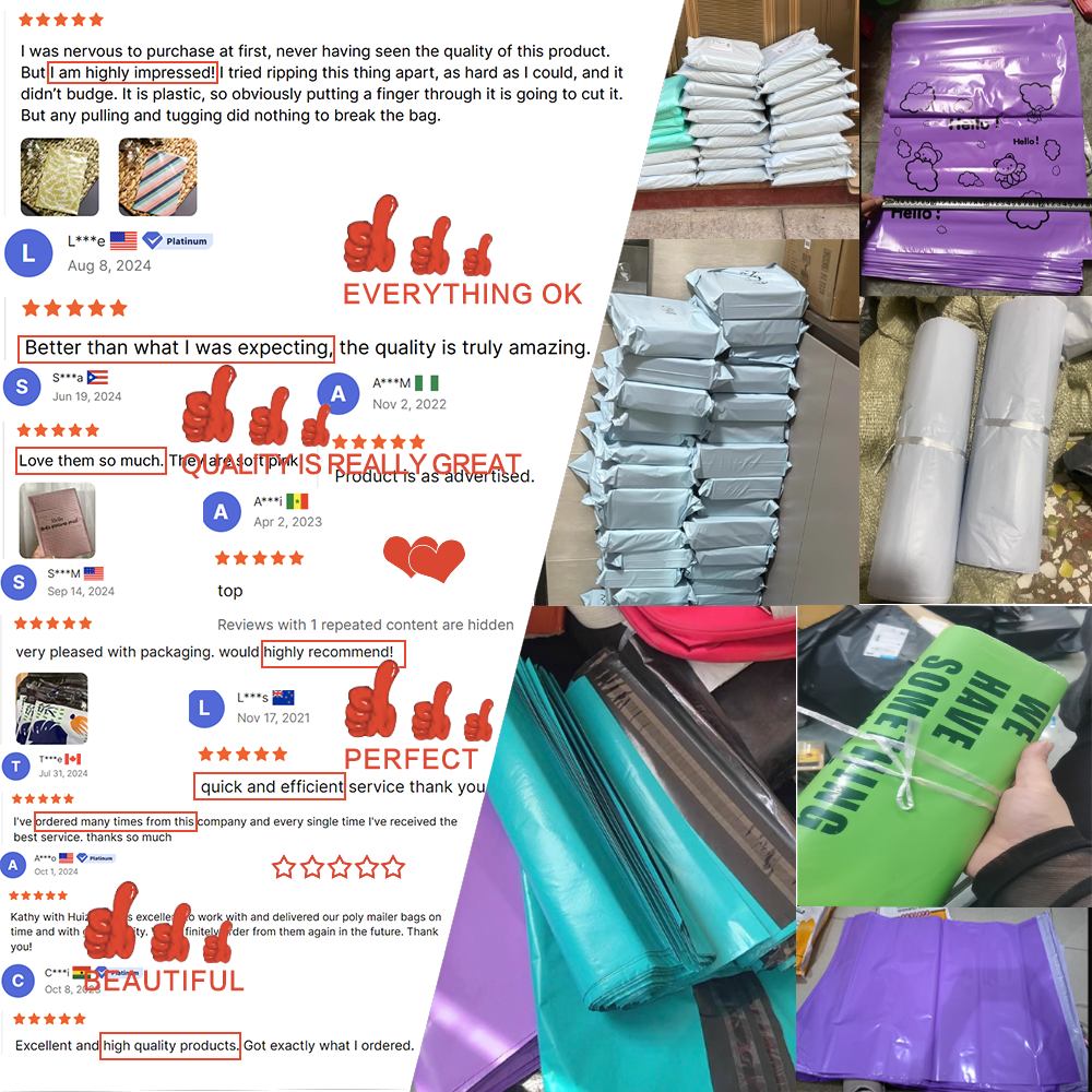 উচ্চ-মানের পুনর্ব্যবহারযোগ্য PE উপাদান থেকে তৈরি, আমাদের পলি মেইলার ব্যাগগুলি জলরোধী, টিয়ার-প্রতিরোধী এবং ডেলিভারির সময় আপনার পোশাক, আনুষাঙ্গিক এবং অনলাইন স্টোর আইটেমগুলির জন্য উচ্চতর সুরক্ষা প্রদান করে।